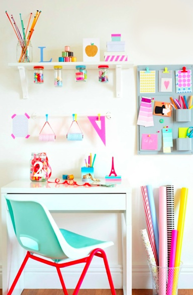 Este abaixo é um dos meus preferidos porque é tudo bem colorido, simples e mesmo assim muito bonito, adorei este organizador na parede.